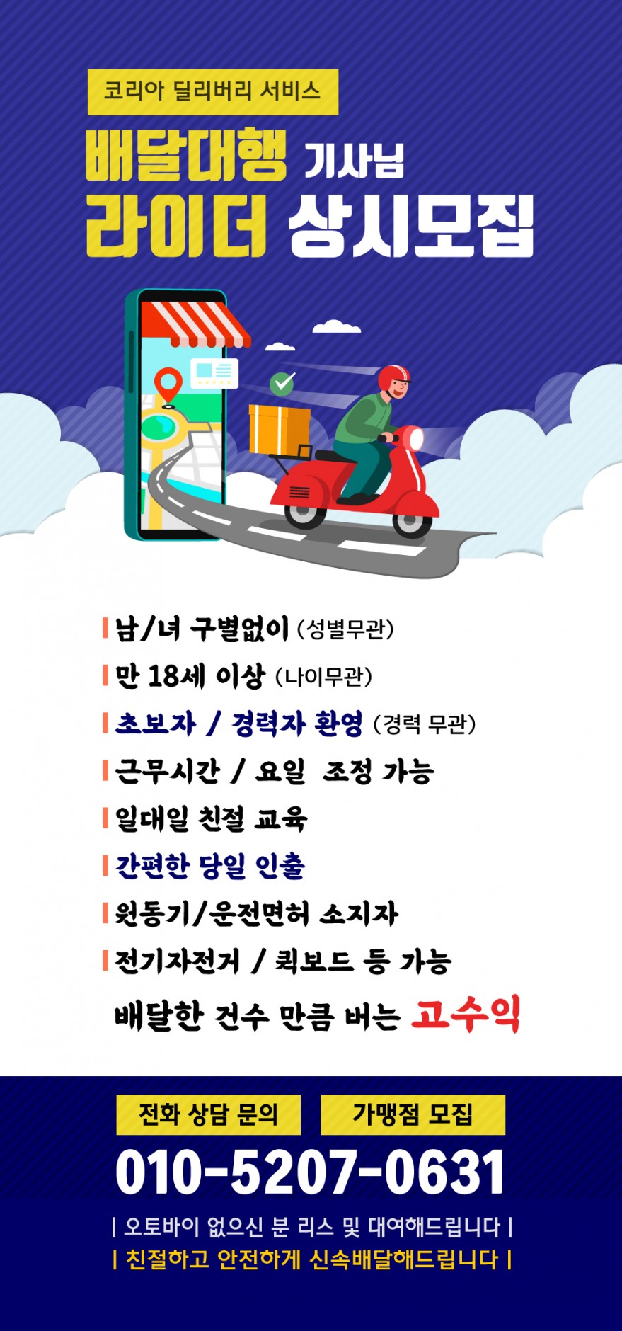 -배달라이더 기사님 모집- [구제주] 페이지 정보 작성자 코OOOOO리 작성일24-01-04 21:32 조회4,596회 연락처 010-5207-0631 관련링크 본문 [구제주] 에서 함께 배달일 할 기사님 모집합니다.성별 상관없이 초보자도 가능합니다.편하게 연락주세요 이전글 다음글 목록