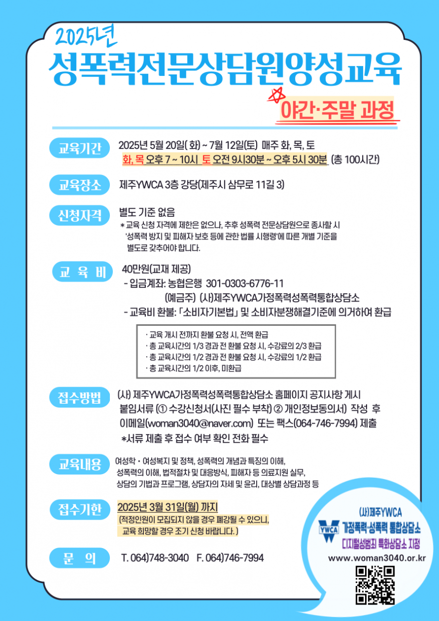 2025년 성폭력전문상담원 양성교육 야간·주말과정 모집 안내