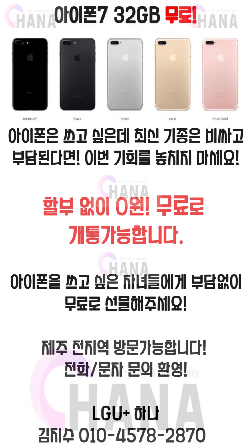 아이폰7(32G) 정상가 ₩ 599,500원 →₩ 0원(새상품) 으로 무료개통 프로모션 진행중입니다~!