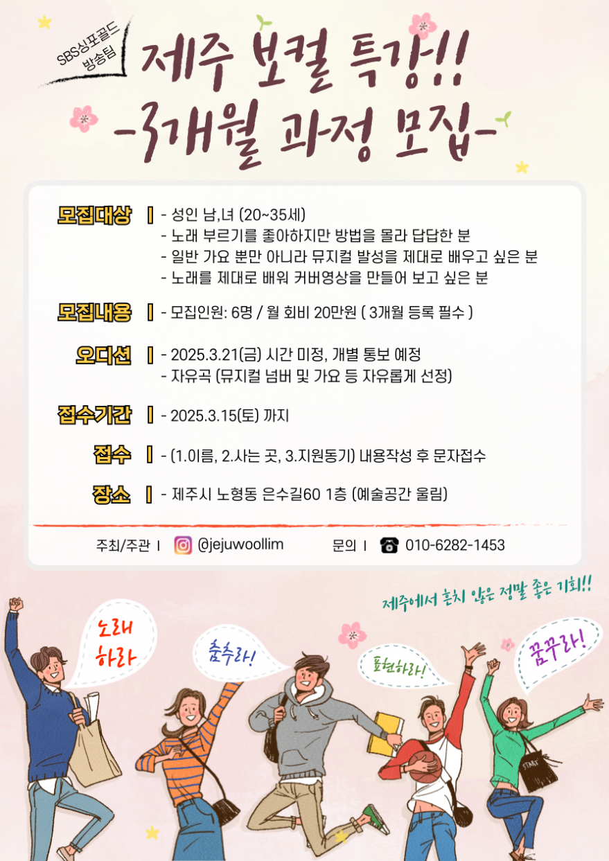 제주 보컬 특강! 3개월 과정 수강생 모집중~~!