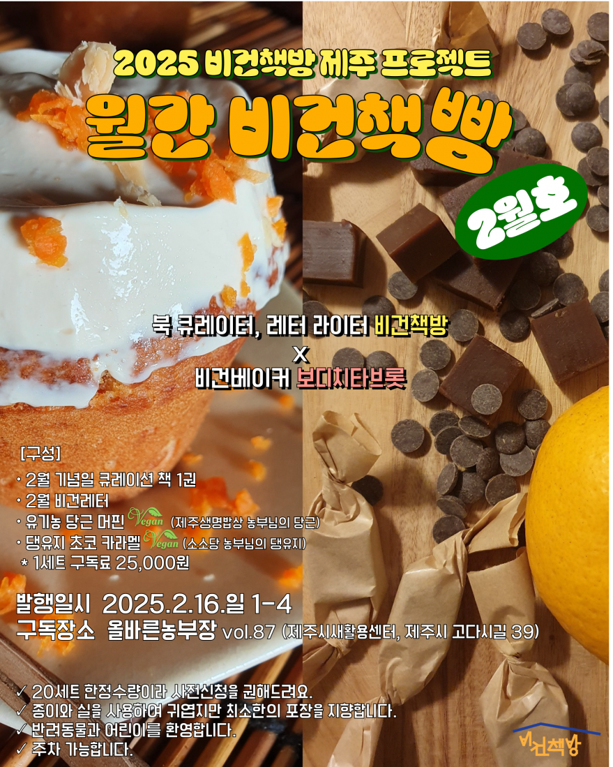 [비건책방 제주] ❝월간 비건책빵 2월호❞ 구독신청 페이지 정보 작성자 dOOOOm 작성일25-02-12 14:14 조회4,611회 연락처 010-0000-0000 관련링크 본문 ☗2025 비건책방 제주 프로젝트【 월간 비건책빵 】 이전글 다음글 목록
