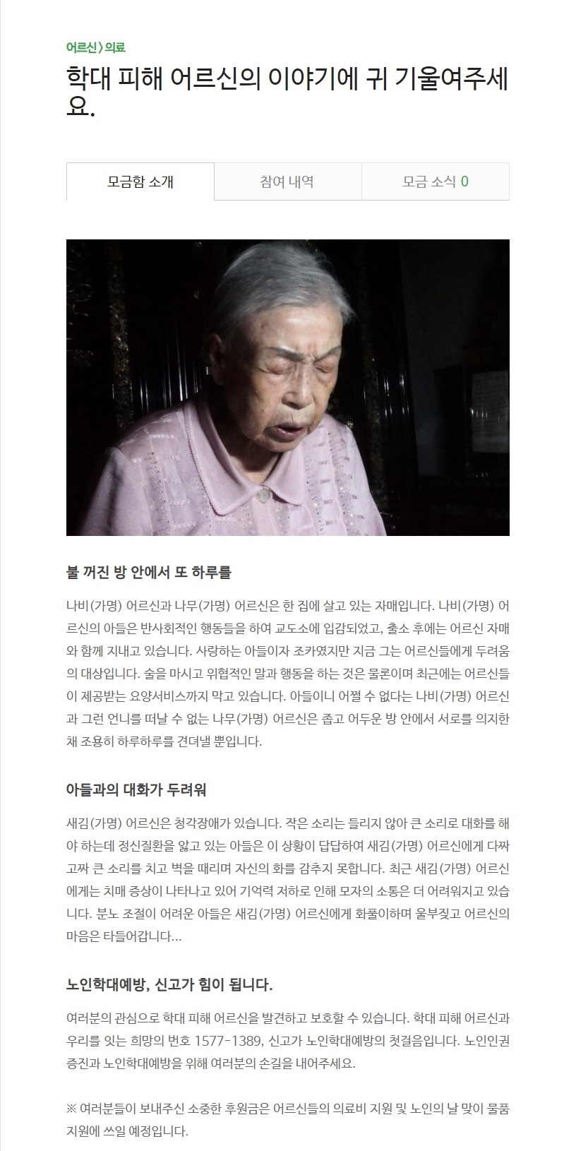 더불어 학대 피해 노인을 위한 모금함이 개설되었음을 알려드립니다.