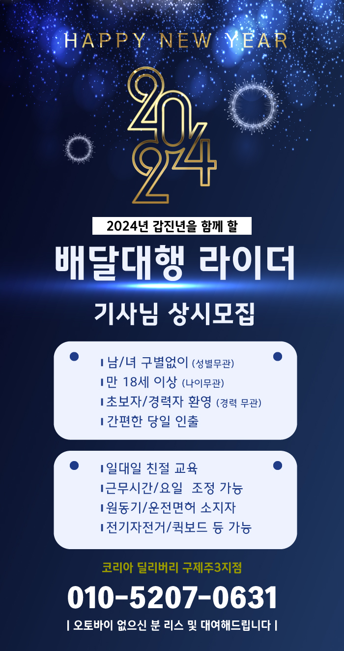 ★★★[구제주]코리아딜리버리/배달/라이더/기사님/모집[남녀구분없이]★★★ 페이지 정보 작성자 코OOOOO리 작성일24-02-03 01:05 조회4,346회 연락처 010-5207-0631 관련링크 본문 [구제주] 에서 함께 배달일 할 기사님 모집합니다.성별 상관없이 초보자도 가능하니 편하게 연락하고상담 받아 보세요 이전글 다음글 목록