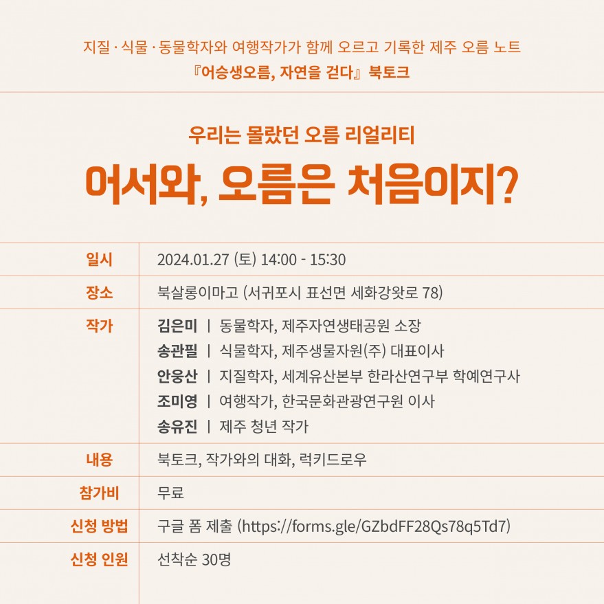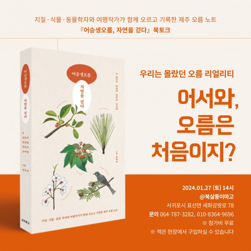 『어승생오름, 자연을 걷다』 북토크를 진행합니다!!