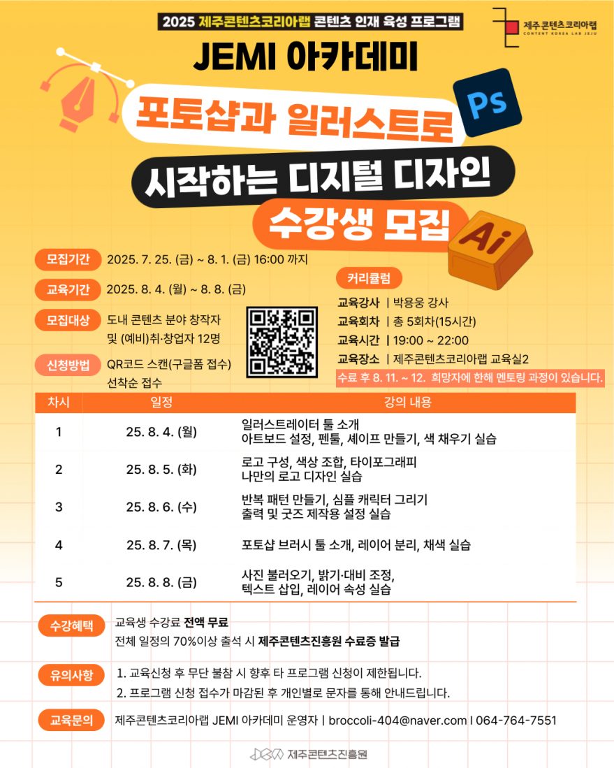 [제주콘텐츠진흥원] 2025 JEMI 아카데미 - 포토샵과 일러스트로 시작하는 디지털 디자인