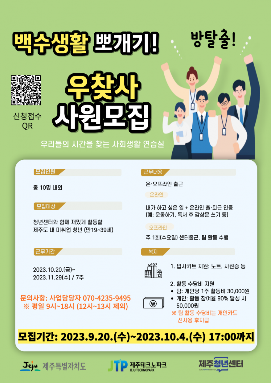 [제주청년센터] 사회생활 연습실 '우찾사' 2회차 참여자 모집 페이지 정보 작성자 탐나 작성일23-09-20 17:20 조회4,615회 연락처 010-3488-7891 관련링크 본문 이전글 다음글 목록
