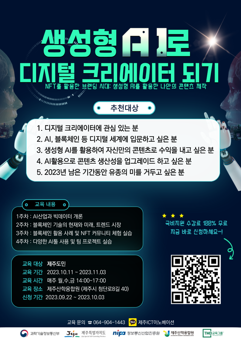 [무료교육] ' 생성형 AI로 디지털 크리에이터 되기' 교육생 모집합니다!