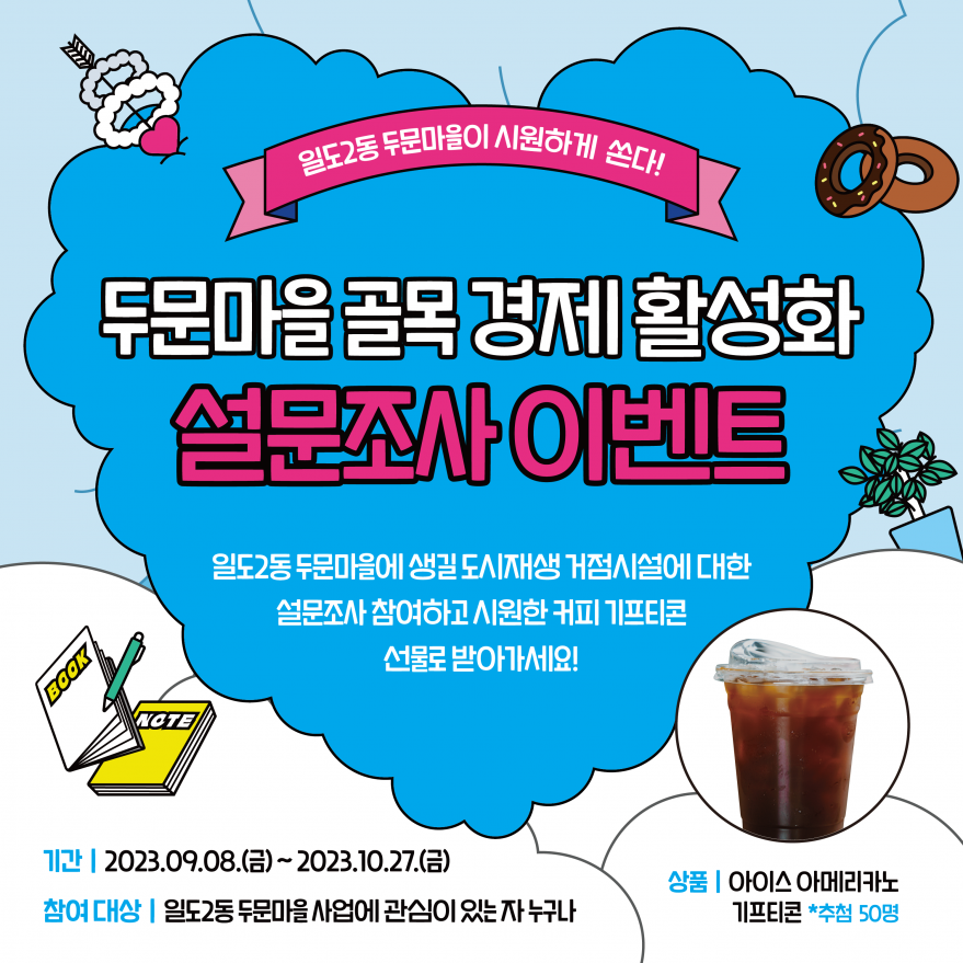 ✨일도2동 두문이마을 골목경제 활성화 설문조사 이벤트✨ 페이지 정보 작성자 iOOOOOOOu 작성일23-09-18 13:00 조회4,517회 연락처 010-0000-0000 관련링크 본문 이전글 다음글 목록