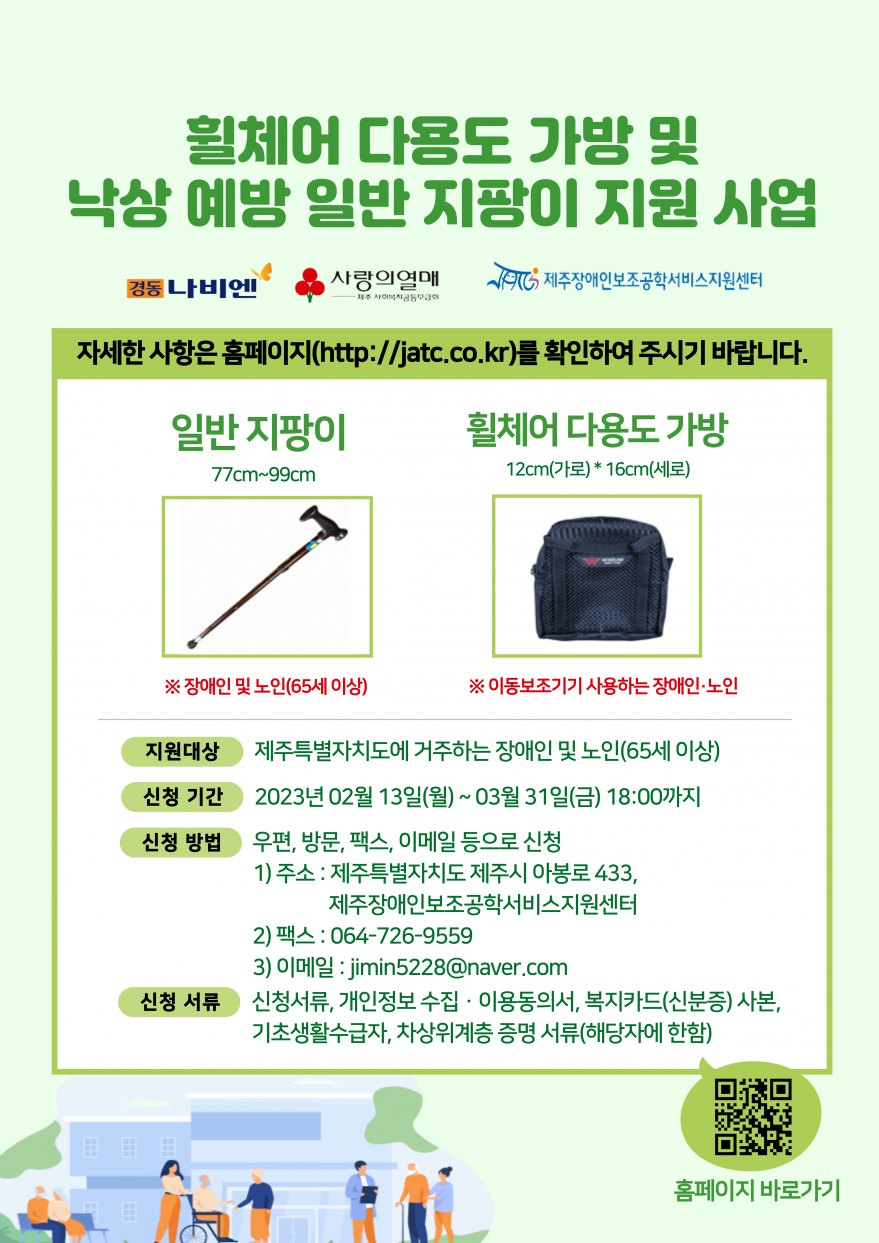낙상예방 일반지팡이 및 휠체어 다용도 가방 지원사업 페이지 정보 작성자 보OO학 작성일23-02-13 11:04 조회4,663회 연락처 010-2773-9669 관련링크 본문 제주장애인보조공학서비스지원센터(이하 ‘센터’)에서는 사회복지공동모금회 및 경동나비엔이 후원하여 낙상예방 일반지팡이 및 휠체어 다용도 가방을 다음과 같이 무료로 지원하고자 합니다. 이전글 다음글 목록