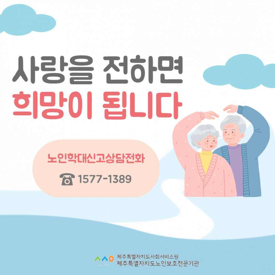 [제주특별자치도노인보호전문기관]사랑을 전하면 희망이 됩니다. 페이지 정보 작성자 제OO보 작성일22-09-26 09:49 조회4,849회 연락처 010-0000-0000 관련링크 본문 사랑을 전하면 희망이 됩니다. 이전글 다음글 목록