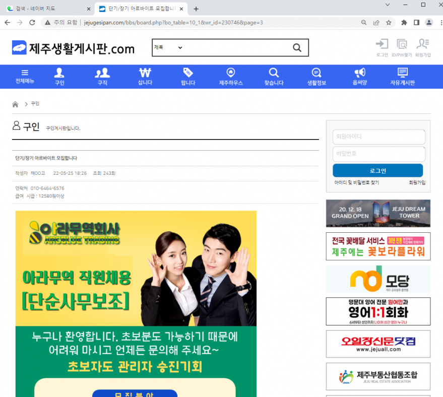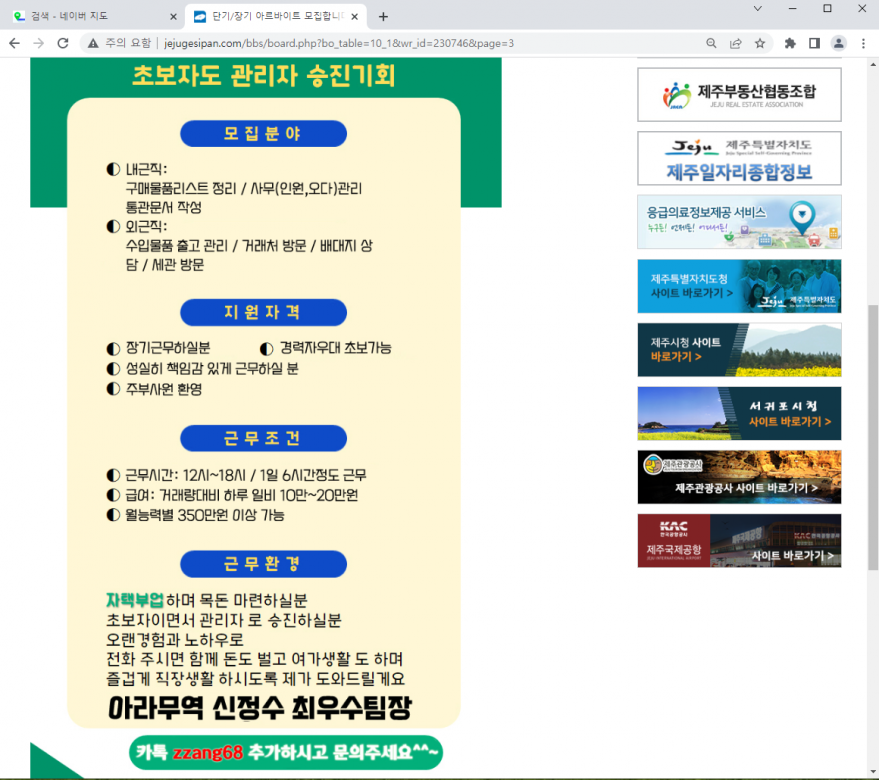 속지 마세요 페이지 정보 작성자 파OO트 작성일22-05-26 16:19 조회4,872회 연락처 010-3140-2478 관련링크 본문 캡쳐한 내용은 보이스피싱 광고이니 속지 마세요현재 순천경찰서에서 수사 중인 상황입니다교묘하게 광고글을 바꿔서 계속 내고 있으니 유의하세요 이전글 다음글 목록