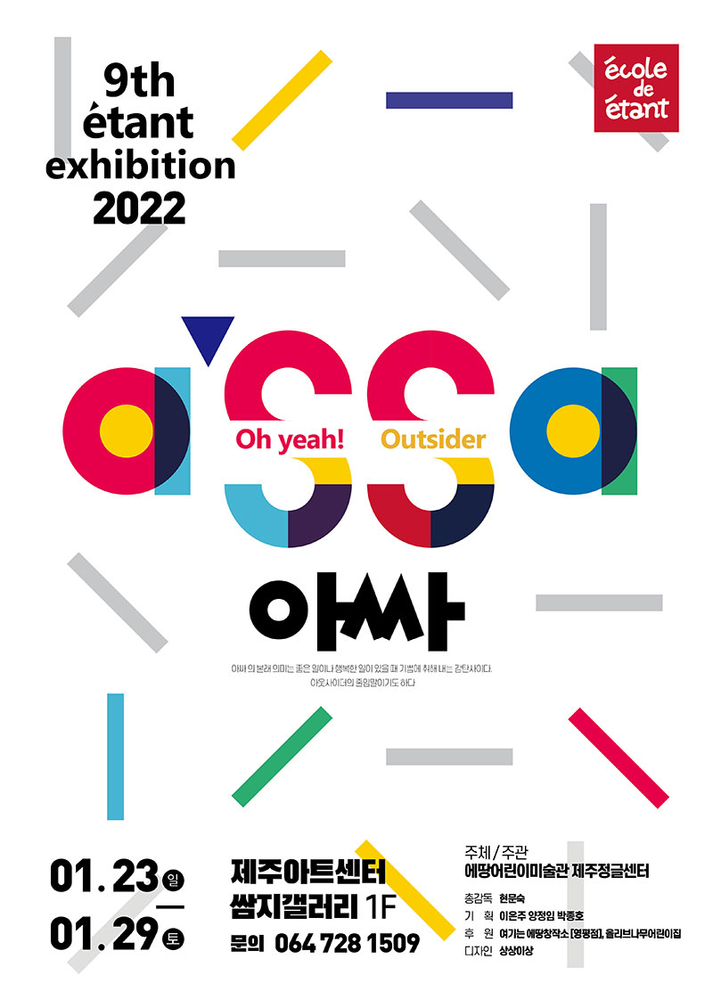 □ 에땅어린이미술관 제주정글센터에서는 오는 1월 23일부터 제주아트센터 쌈지갤러리에서 2022년‘아싸!’전시회를 선보입니다.