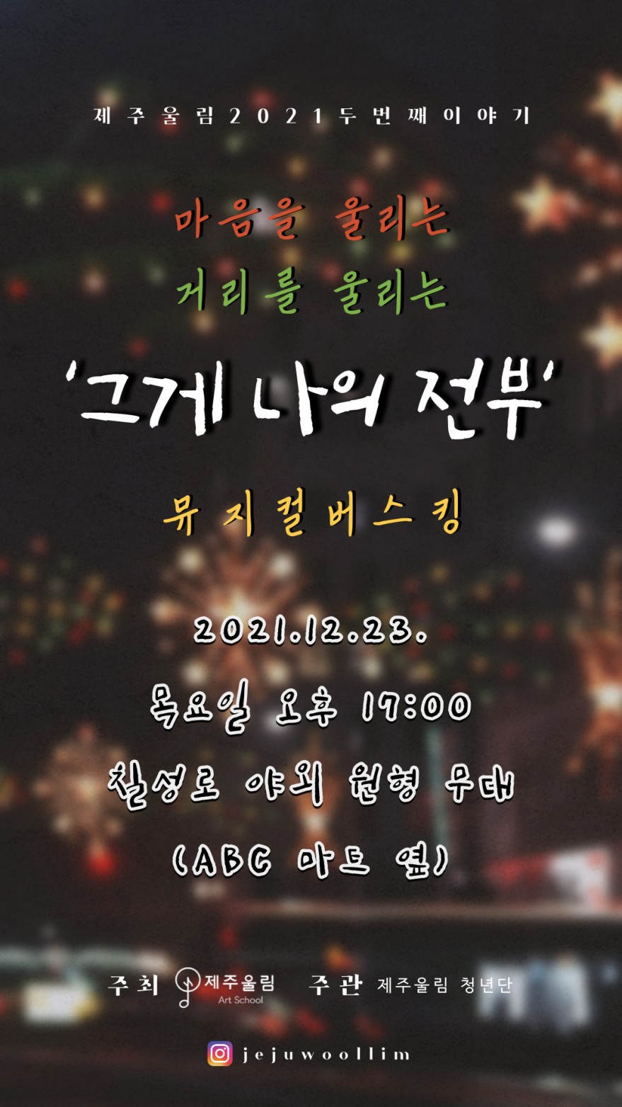 버스킹 공연합니다!! 페이지 정보 작성자 제OO림 작성일21-12-21 11:02 조회4,908회 연락처 010-6282-1453 관련링크 본문 제주울림 청년단에서 뮤지컬 버스킹 공연을 합니다!!'2021년 12월 23일 목요일 오후 5시'오셔서 힐링 받고 가세요 이전글 다음글 목록