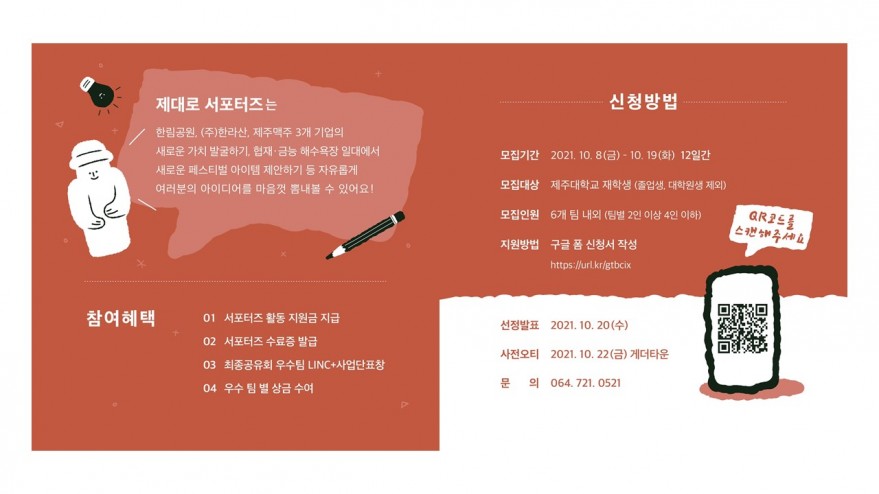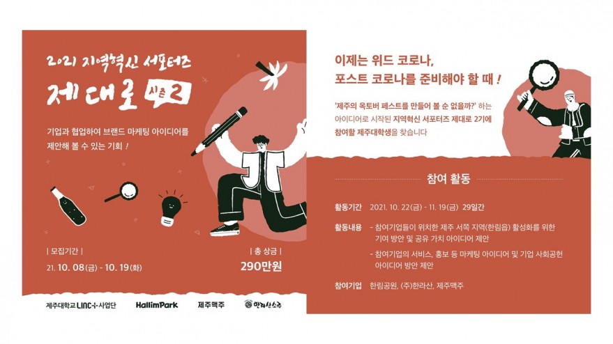 제주맥주, (주)한라산, 한림공원과 협업하여 브랜드 마케팅 아이디어를 제안해 볼 수 있는 서포터즈를 모집합니다!