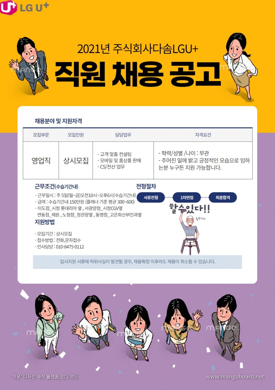 LGU+ 제주도 1등 , 제주도 최초 도/소매 주식회사 다솜에서 함께 일 하실 직원분을 모십니다 '-'♥