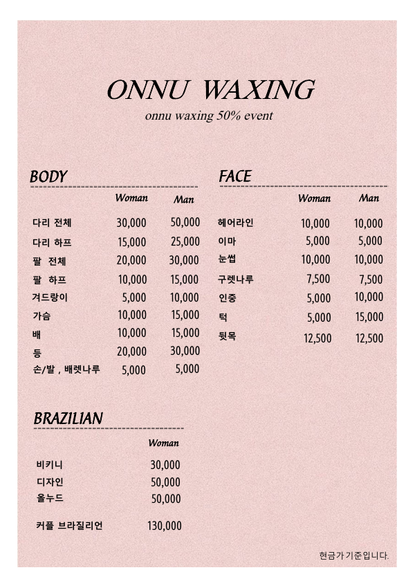 온누왁싱 7월 50% 할인 이벤트 !! 페이지 정보 작성자 jOOOOOg 작성일21-07-14 00:21 조회6,750회 연락처 010-3363-1968 관련링크 본문 포트폴리오를 위해서 7/1 ~ 7/31 한달동안50% 할인 이벤트를 합니당 위치는 노형 드림타워 근처구요!예약 및 상담 문의는 010-3363-1968 로 카톡이나 문자 주세요 ₍₍ ( ๑॔˃̶◡ ˂̶๑॓)◞♡ 이전글 다음글 목록